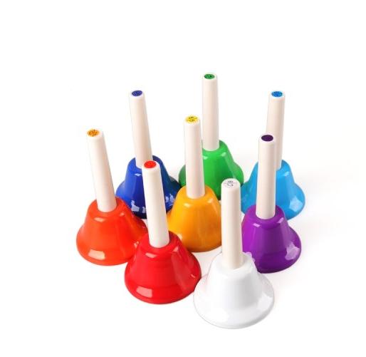 Набор колокольчиков на ручке - отличная идея, чтобы устроить музыкальную минутку в классе, к примеру. Колокольчик - как и музыкальная игрушка, так и символ власти дежурного по классу, например. С ним можно придумать множество различных игр или использовать на учебе.